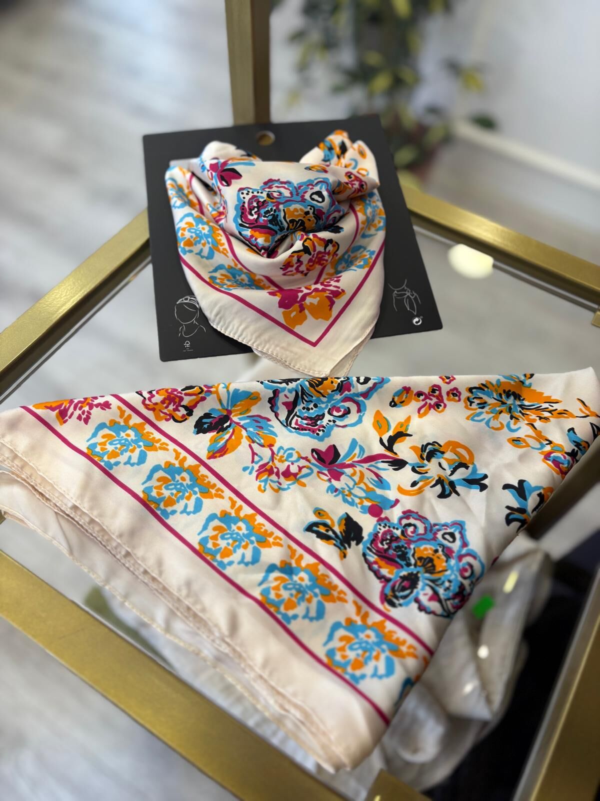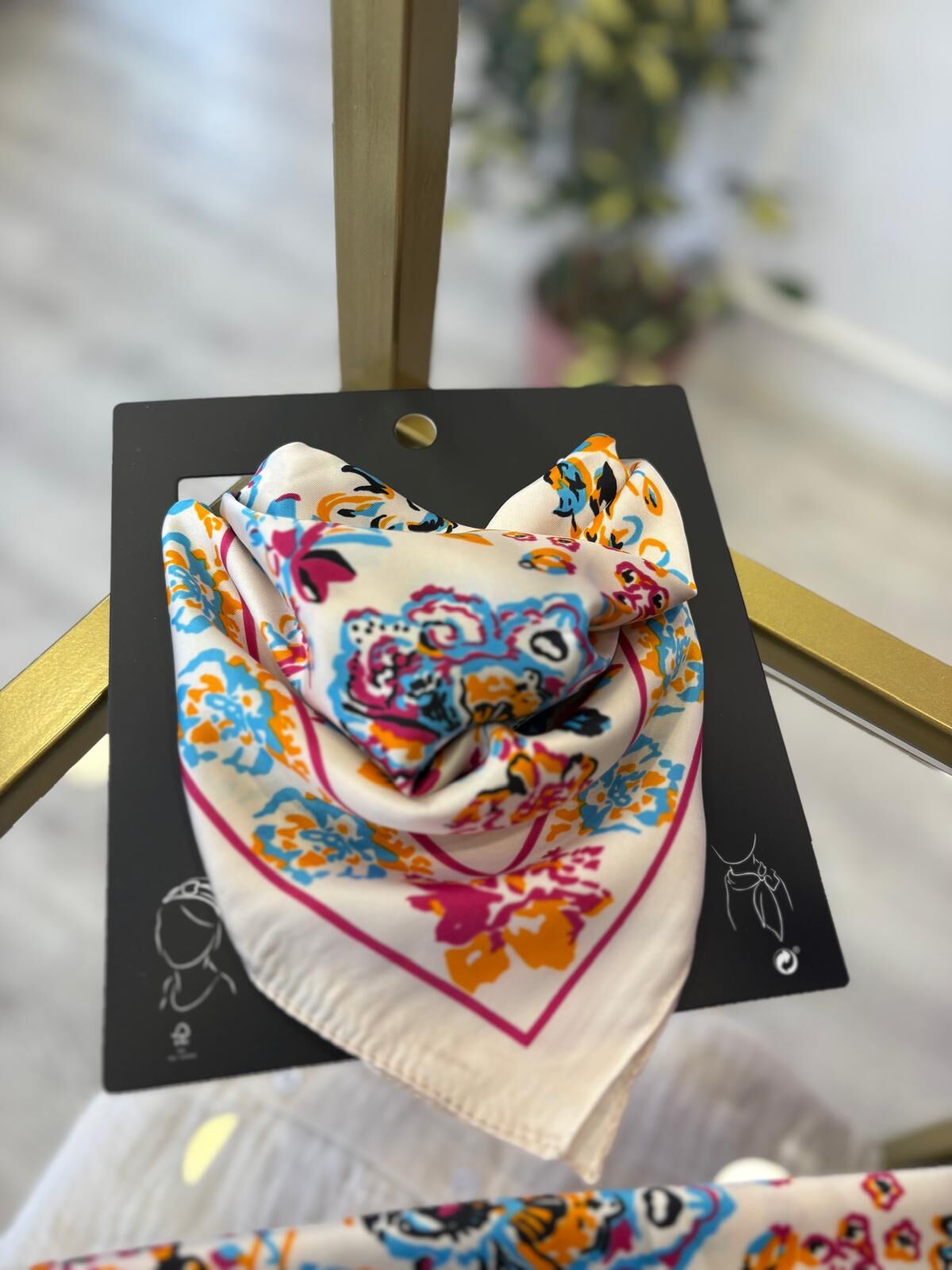 Beyaz çiçek desenli ipek fular, ilkbahar ve yaz mevsimlerinde kullanabileceğiniz pratik bir aksesuardır. Klasik tarzda boynunuza bağlayarak veya farklı şekillerde kafanıza takarak kullanabilirsiniz. Üstelik yumuşak ve hafif kumaşıyla gün boyu rahatlık sağlar. Her durumda şıklığınızı tamamlamak için mükemmel bir aksesuardır.