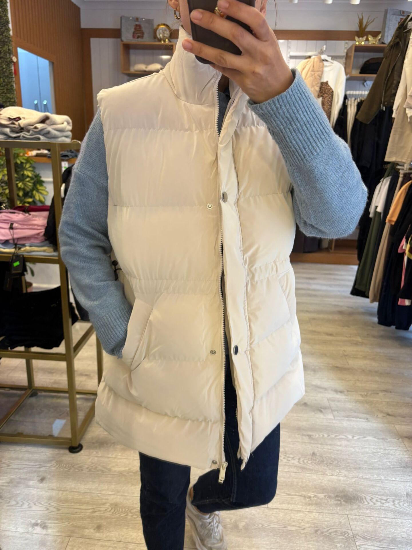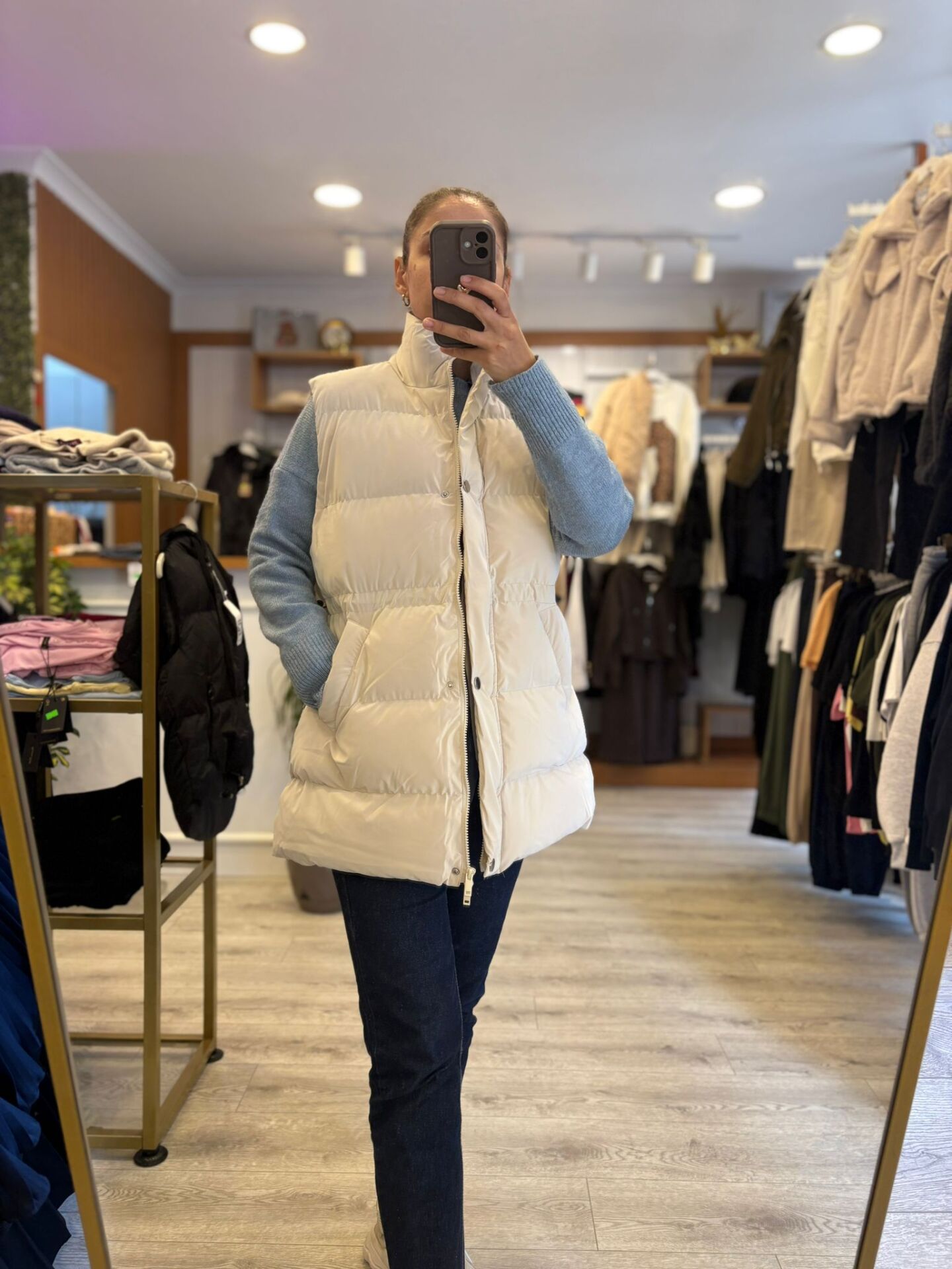 Krem Renkli Şişme Yelek, Soğuk Havalarda Sıcak Tutan Hafif ve Şık Bir Tercih. Krem Rengi, Beli Büzgülü Tasarım Sayesinde Vücudu Saran Yapısıyla Hem Rahatlık Sağlar Hem de Kalçayı Kapatır. Günlük Kullanıma Uygun, Hareket Özgürlüğü Sunan Bu Yelek, Stilinizi Tamamlar.