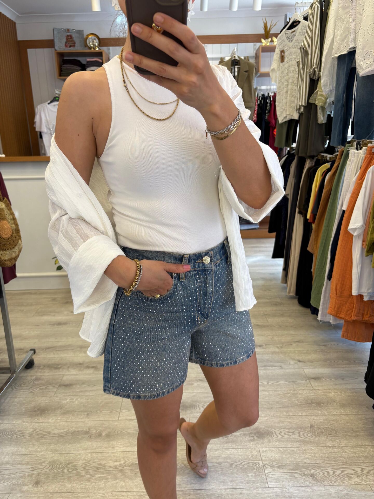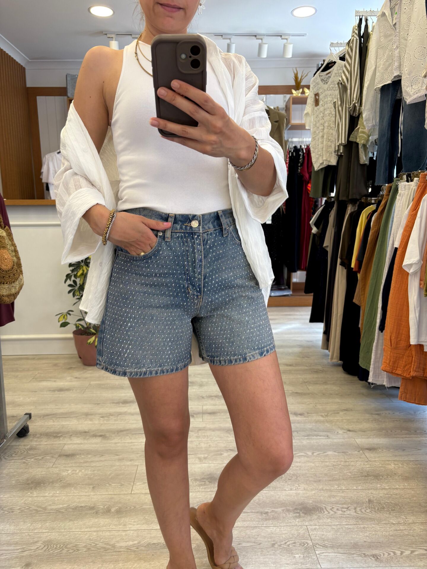 Taşlı denim şortumuz, ışıltılı detaylarıyla dikkat çekerken, denim kumaşıyla da rahat bir giyim deneyimi sunar. Günlük kullanıma uygun olan bu taşlı denim şort, hem şıklığı hem de konforu bir araya getirmektedir.
